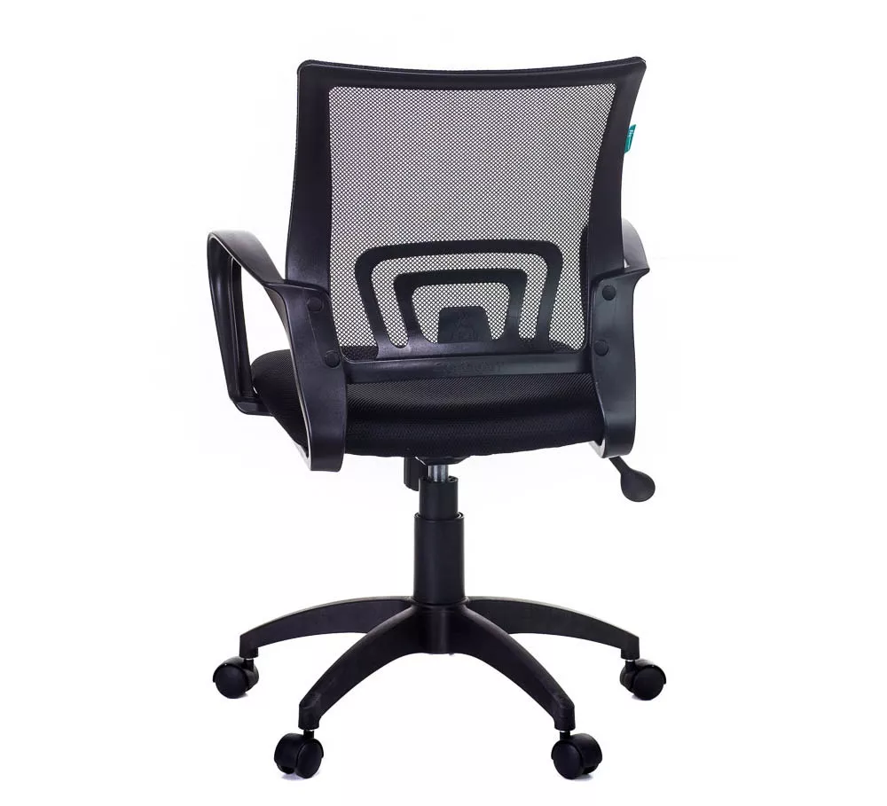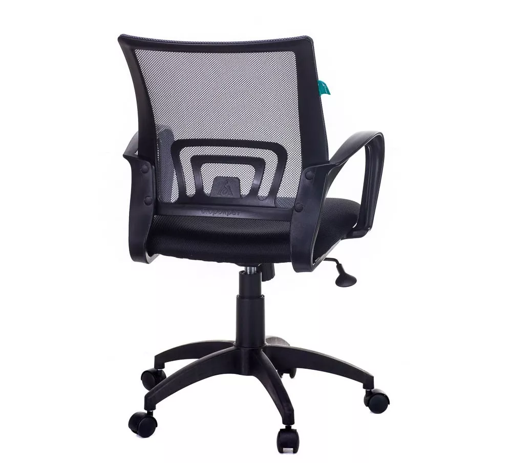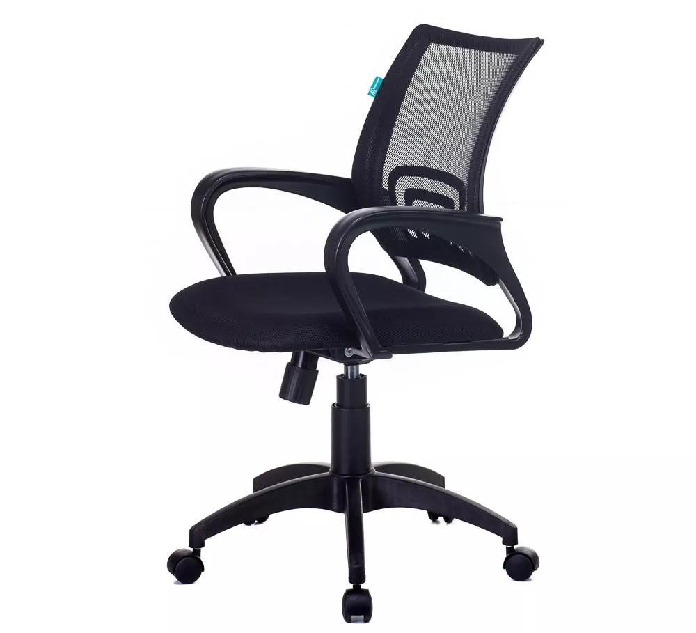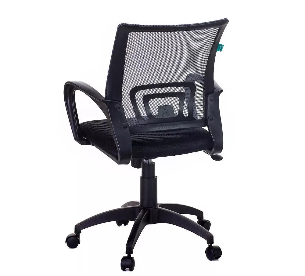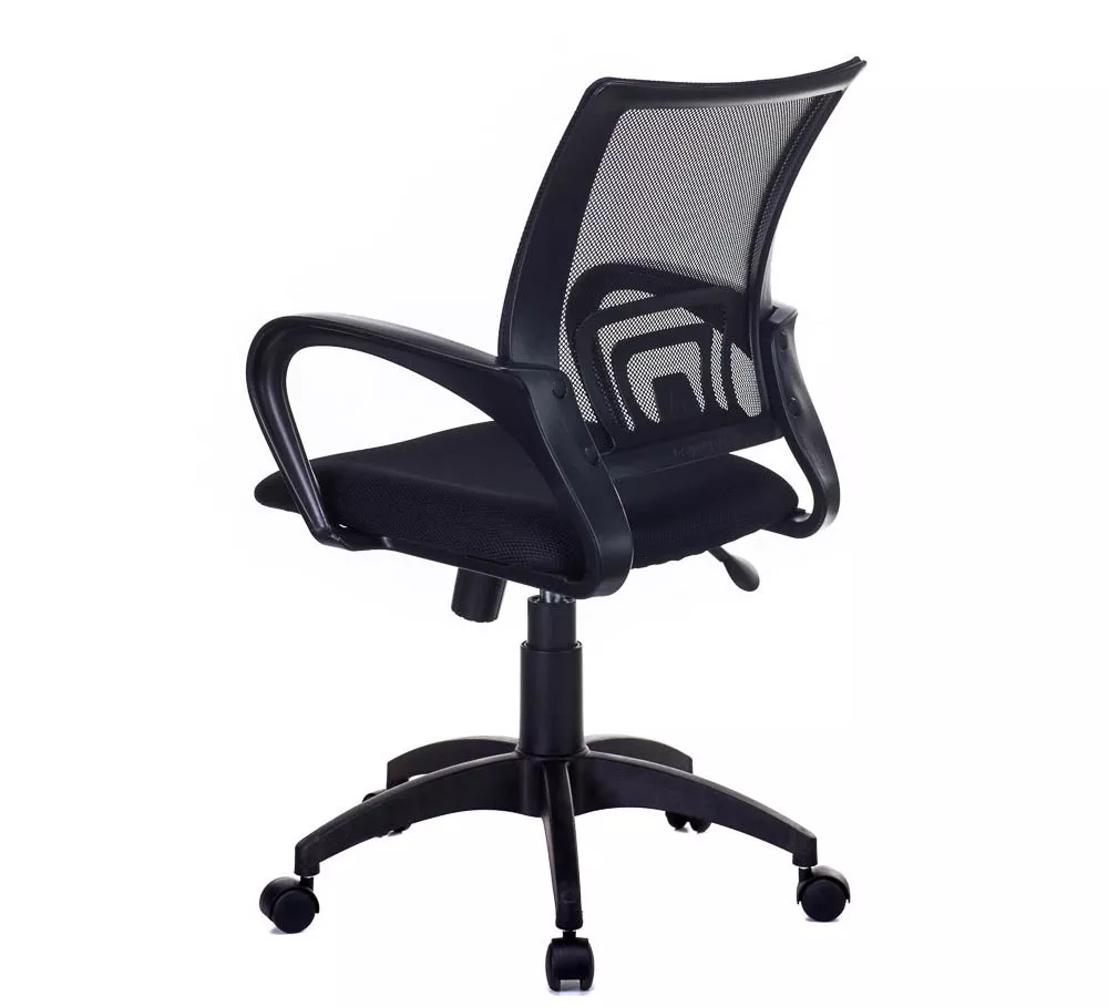 Ткань черного цвета, которой обтянуто сидение кресла, отличается своей прочностью и износостойкостью. Предусмотрен механизм качания. Пятилучевая крестовина изготовлена из прочного пластика. В сочетании с поворотными колесиками, она позволяет креслу легко и бесшумно передвигаться по любому напольному покрытию. Ограничения - вес более 120 кг.