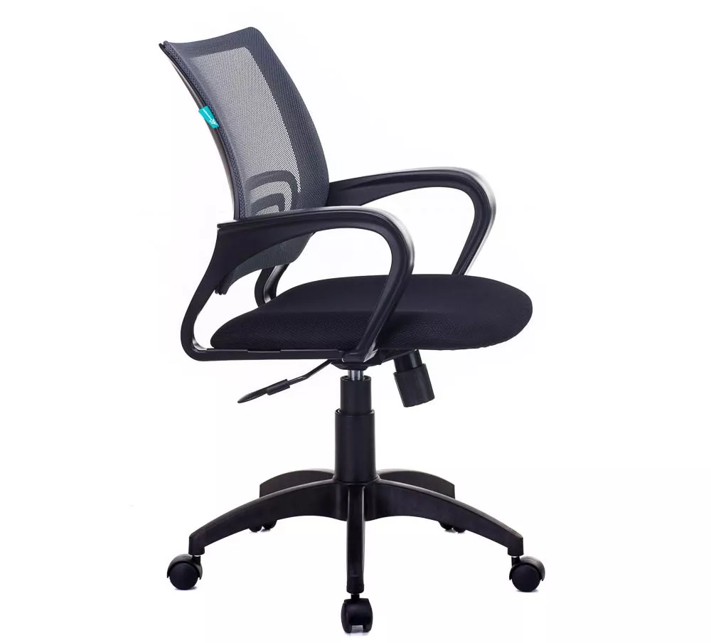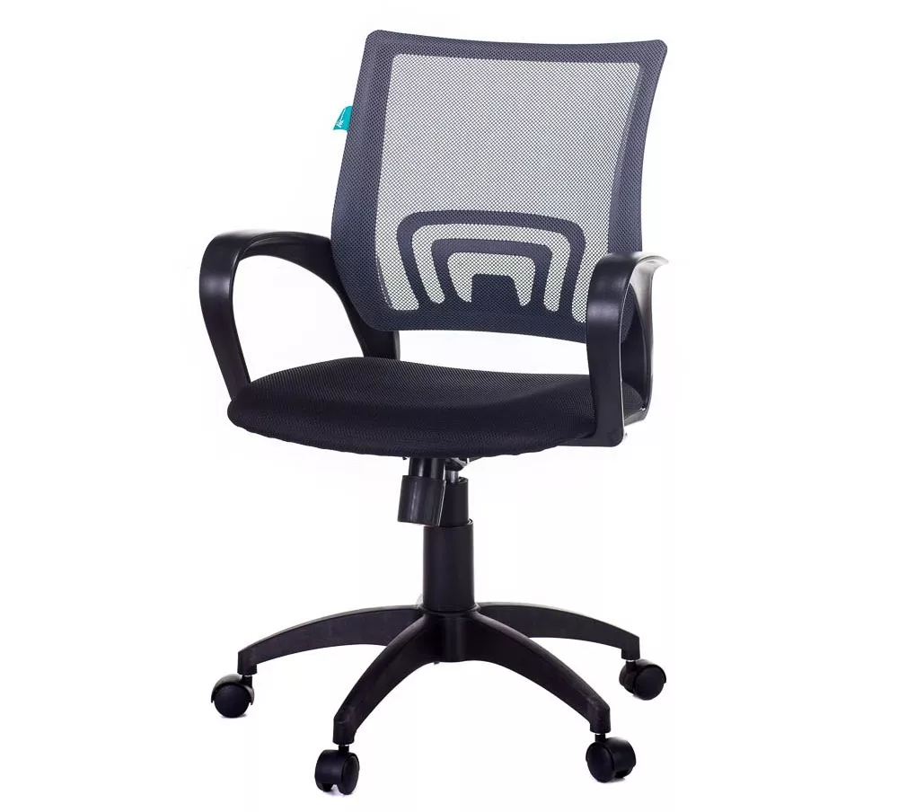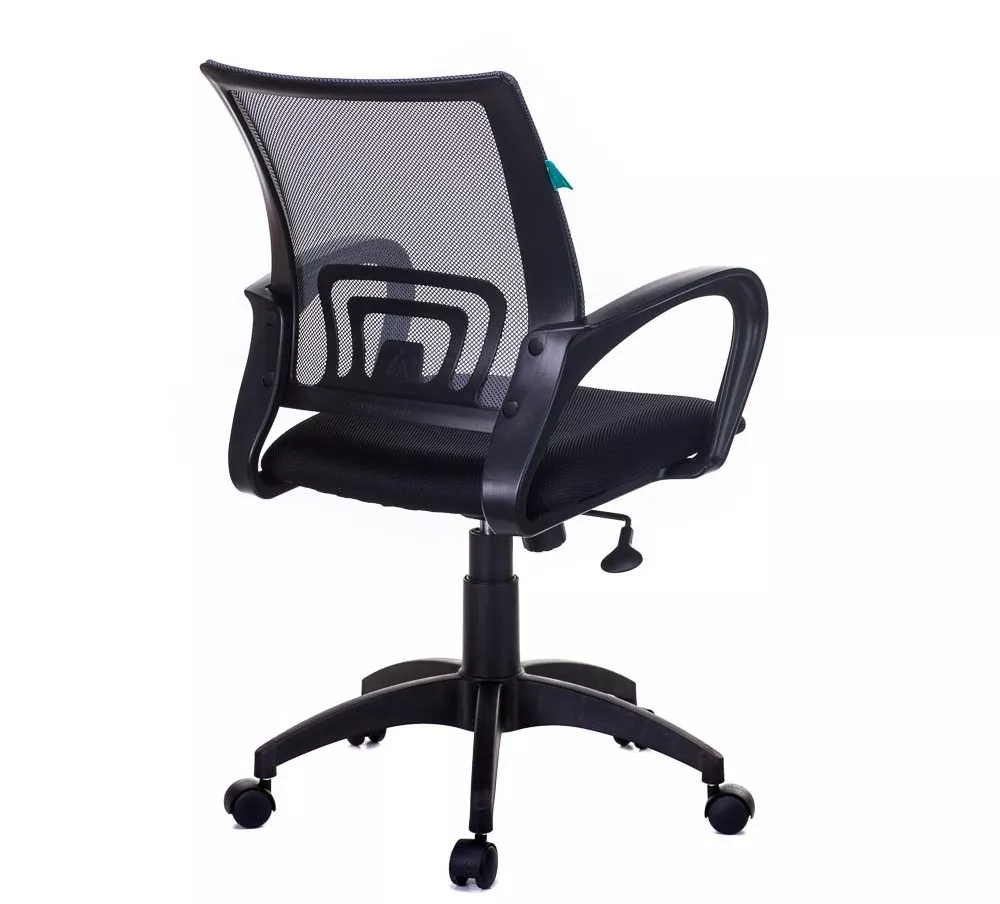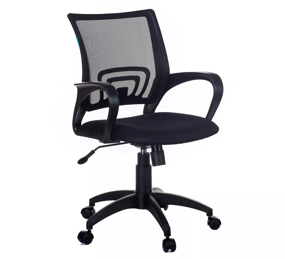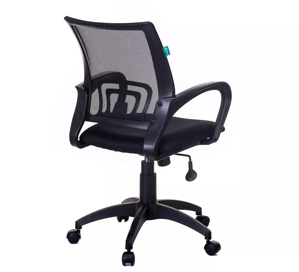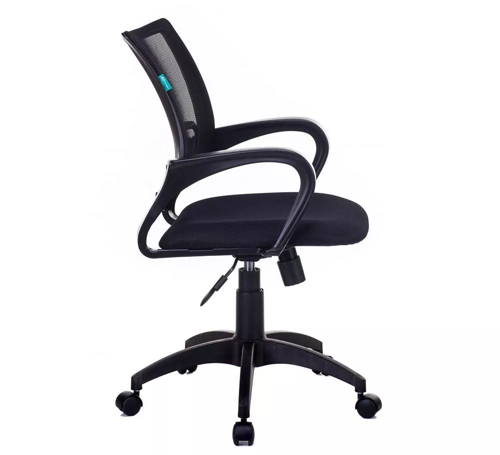 Ткань черного цвета, которой обтянуто сидение кресла, отличается своей прочностью и износостойкостью. Предусмотрен механизм качания. Пятилучевая крестовина изготовлена из прочного пластика. В сочетании с поворотными колесиками, она позволяет креслу легко и бесшумно передвигаться по любому напольному покрытию. Ограничения - вес более 120 кг.