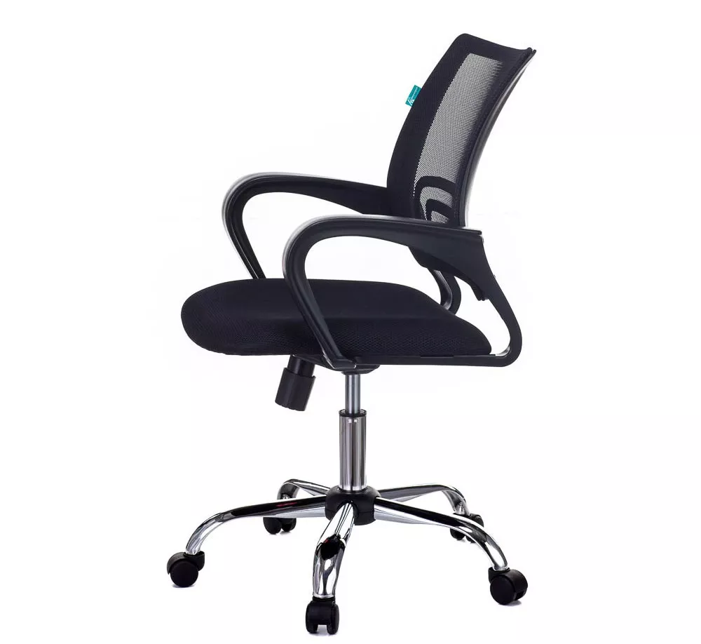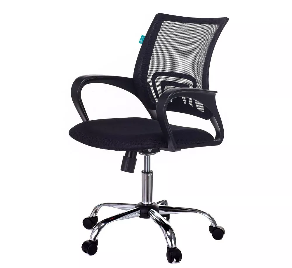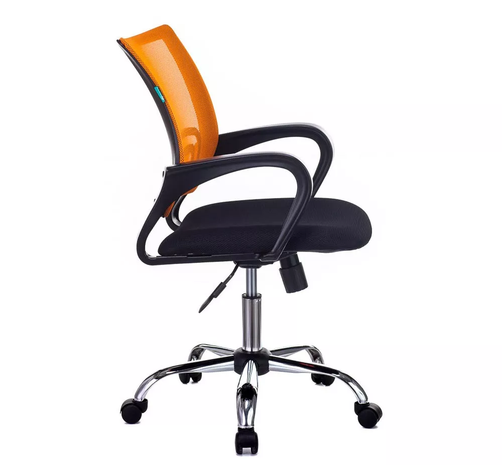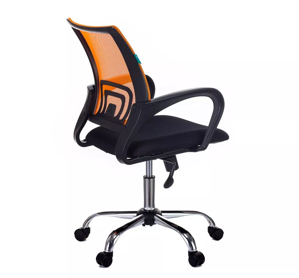 Хромированные элементы кресла выглядят стильно в любом интерьере. Для обивки сидения использована ткань, устойчивая к растяжению, истиранию. В лаконичный дизайн изделия прекрасно вписываются пластиковые подлокотники, которые будут очень удобными для владельца кресла. Хромированная пятилучевая крестовина с поворотными колесиками делает