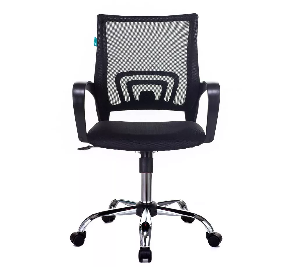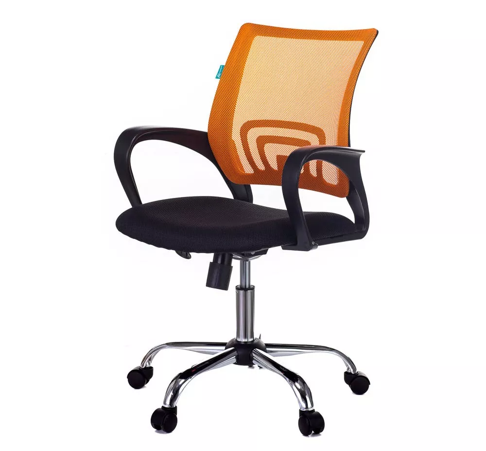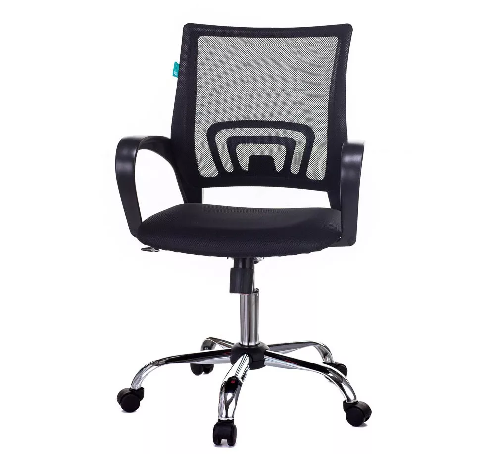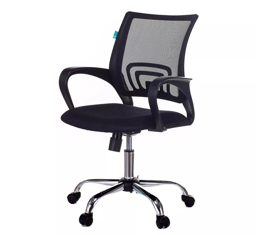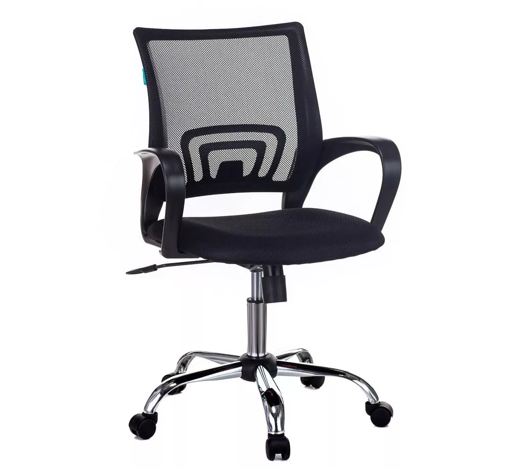 Хромированные элементы кресла выглядят стильно в любом интерьере. Для обивки сидения использована ткань, устойчивая к растяжению, истиранию. В лаконичный дизайн изделия прекрасно вписываются пластиковые подлокотники, которые будут очень удобными для владельца кресла. Хромированная пятилучевая крестовина с поворотными колесиками делает