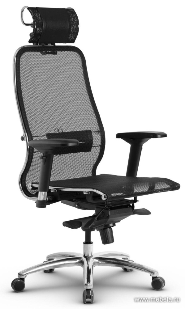 Это оригинальное кресло для офиса сочетает в себе два противоположных качества: изящество и массивность. Тонкая изогнутая спинка гармонично сбалансирована массивной крестовиной, объемным подголовников и укороченными подлокотниками.