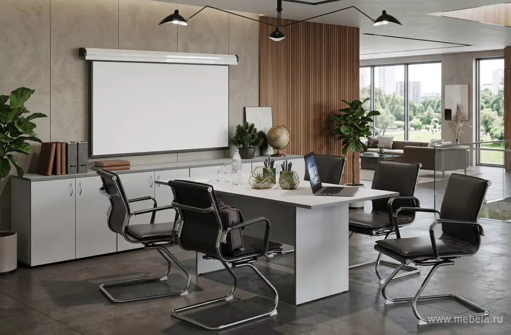 Благодаря столам для переговоров Агат получится организовать пространство любой сложности и геометрии. Всего 2 элемента гарнитура поможет сформировать желаемую форму на усмотрение пользователя благодаря полной совместимости деталей друг с другом.