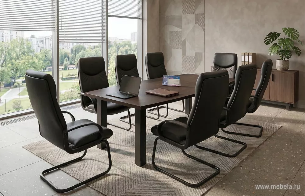 Столы для переговоров Фёст Венге одинаково хорошо подойдут для создания классического или современного открытого интерьера. Для этого в комплекте гарнитура есть мебель на глухих ДСП панелях-опорах или на металлизированных прямоугольных ножках. Прямоугольные или закругленные формы придадут офису желаемый стиль.